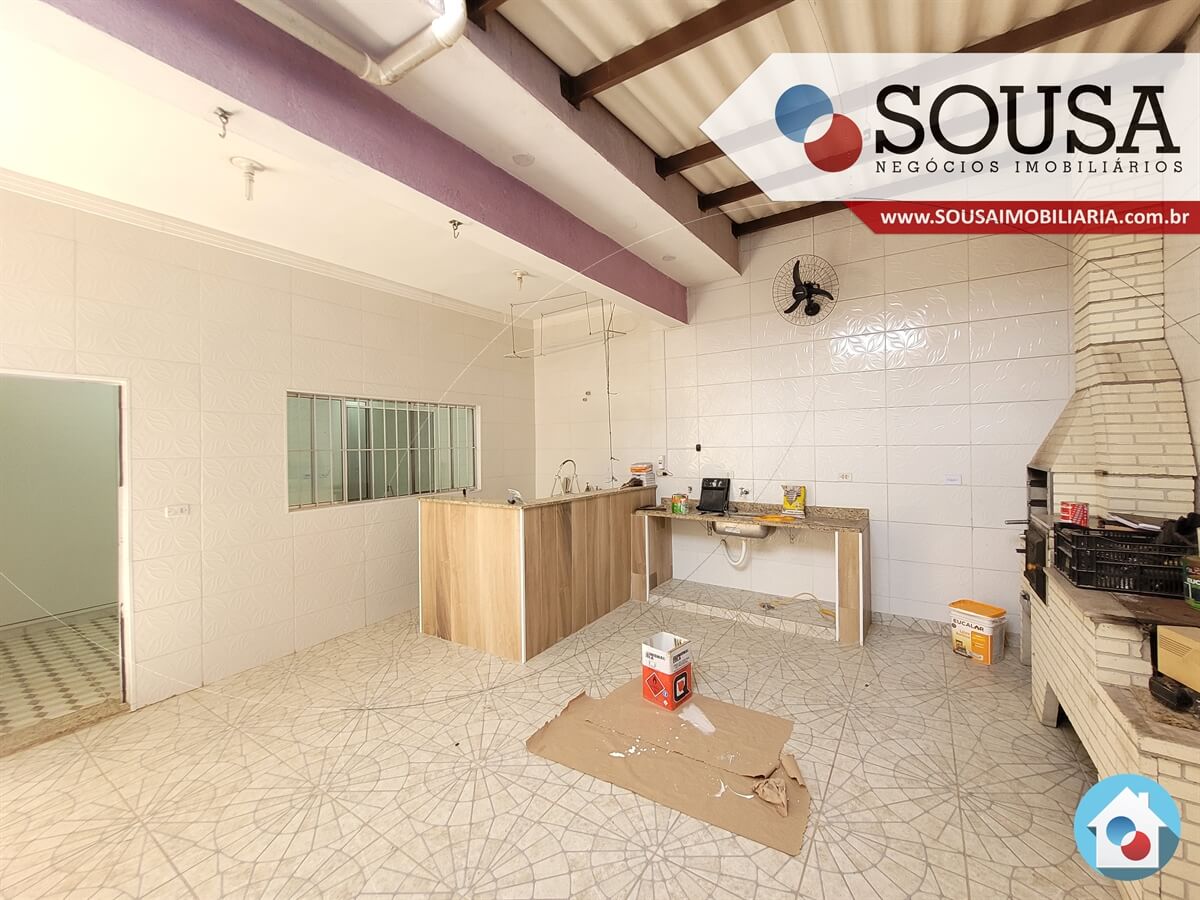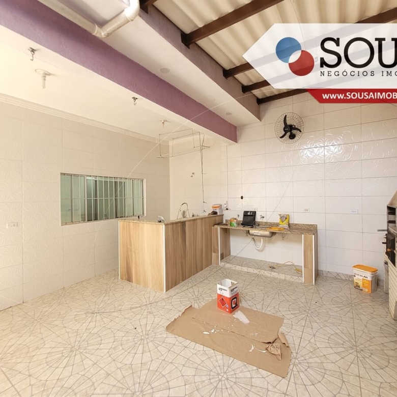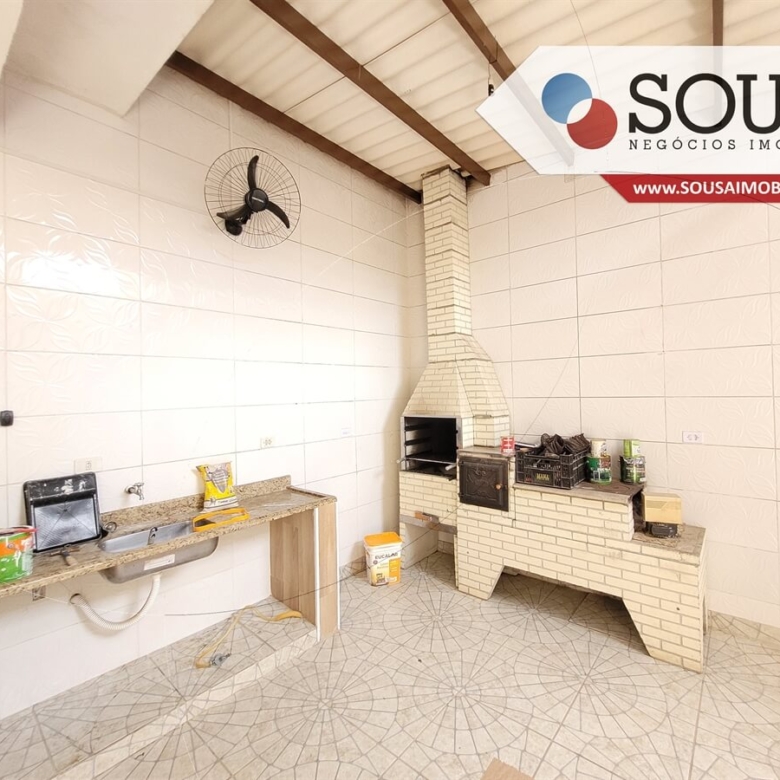 Imóvel com 02 vagas de garagem cobertas, sala de estar, banheiro social, cozinha com armários de alvenaria, quintal amplo todo coberto com lavanderia e área gourmet com churrasqueira, forno, fogão à lenha e pia. No andar superior, 02 dormitórios, sendo 01 com suíte, closet e escritório, banheiro social, e varanda para a rua de frente.