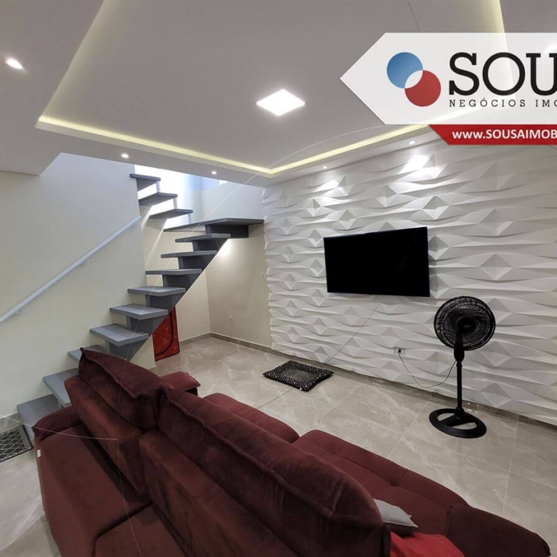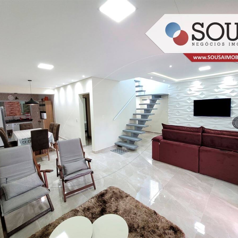 Imóvel com 03 vagas de garagem cobertas, no andar térreo conta com sala 02 ambientes, tv e jantar, integrada com cozinha em conceito aberto, 01 dormitório, banheiro social, lavanderia coberta e linda área coberta nos fundos. No andar superior possui outros 03 dormitórios, sendo 01 suíte com closet e 01 banheiro.